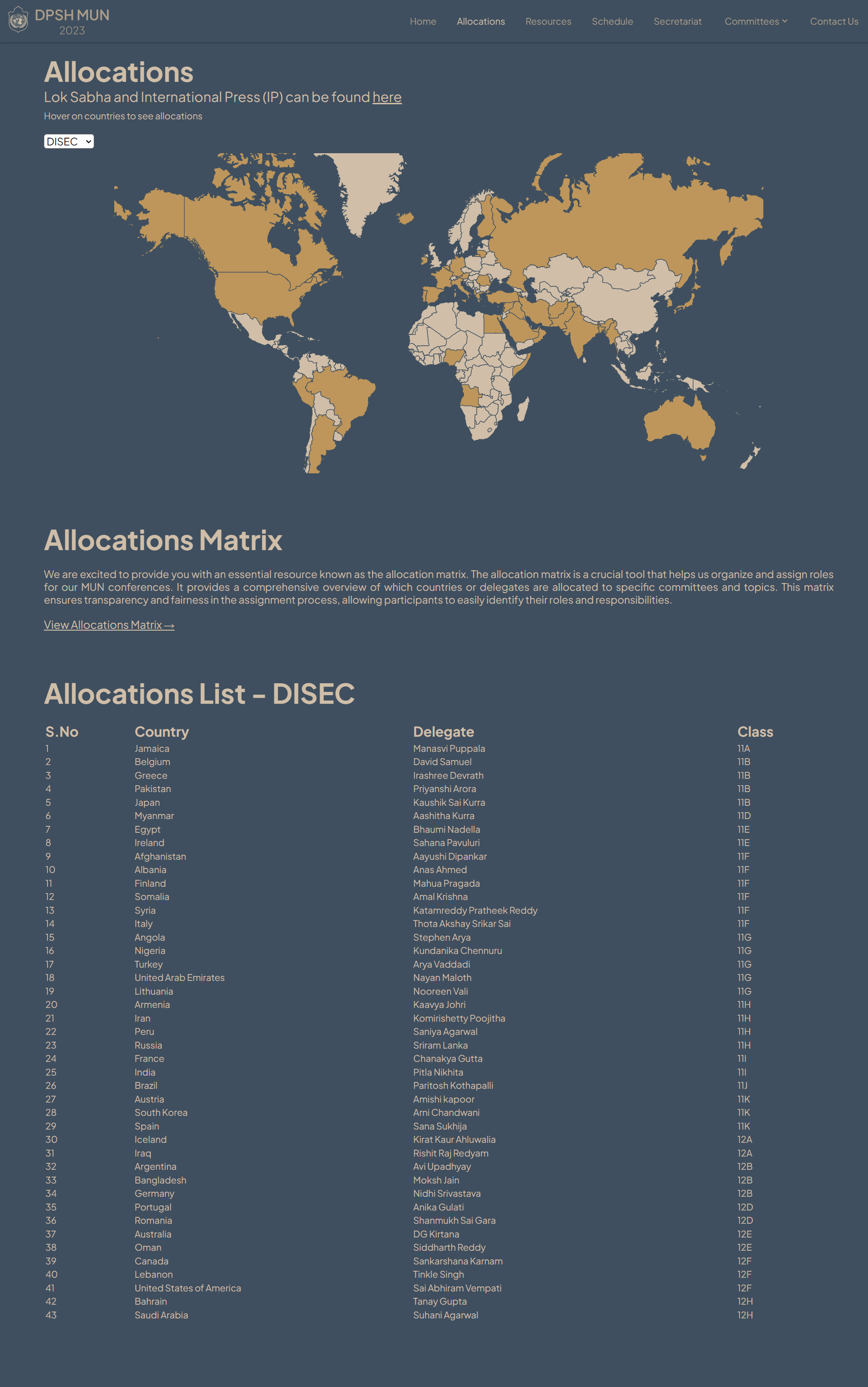 The DPSH MUN was an intra school MUN conducted at DPSH, to update the participating students with the latest updates and provide them with important resources, the DPSH MUN website was hosted.